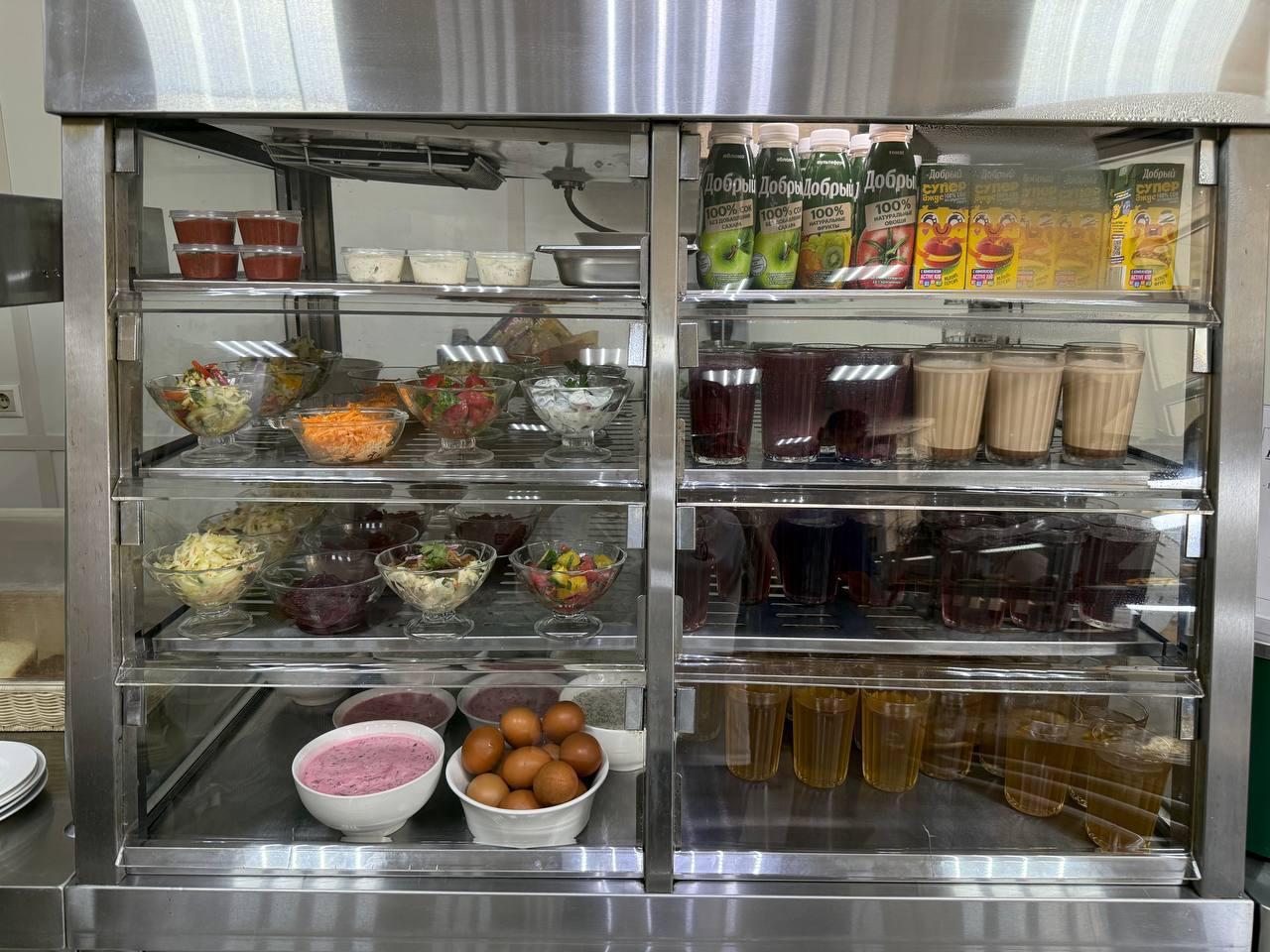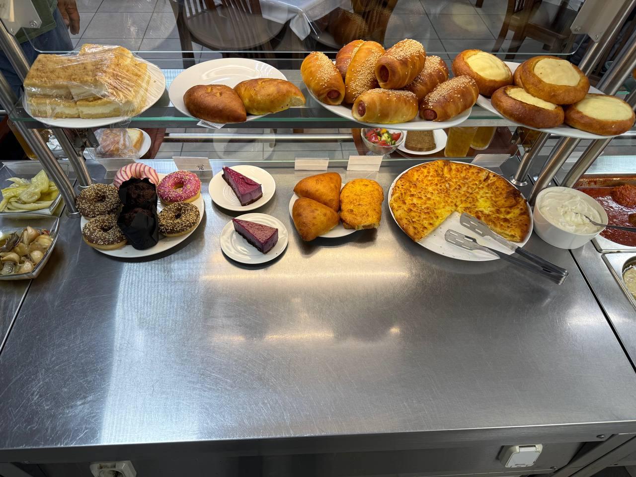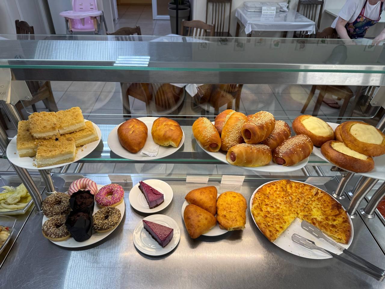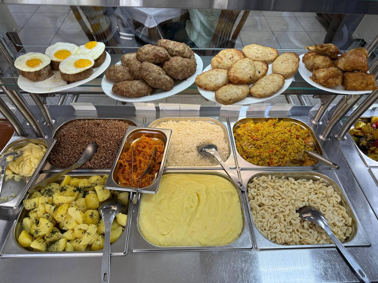 В меню ежедневно: горячие блюда, гарниры, салаты, выпечка и напитки.