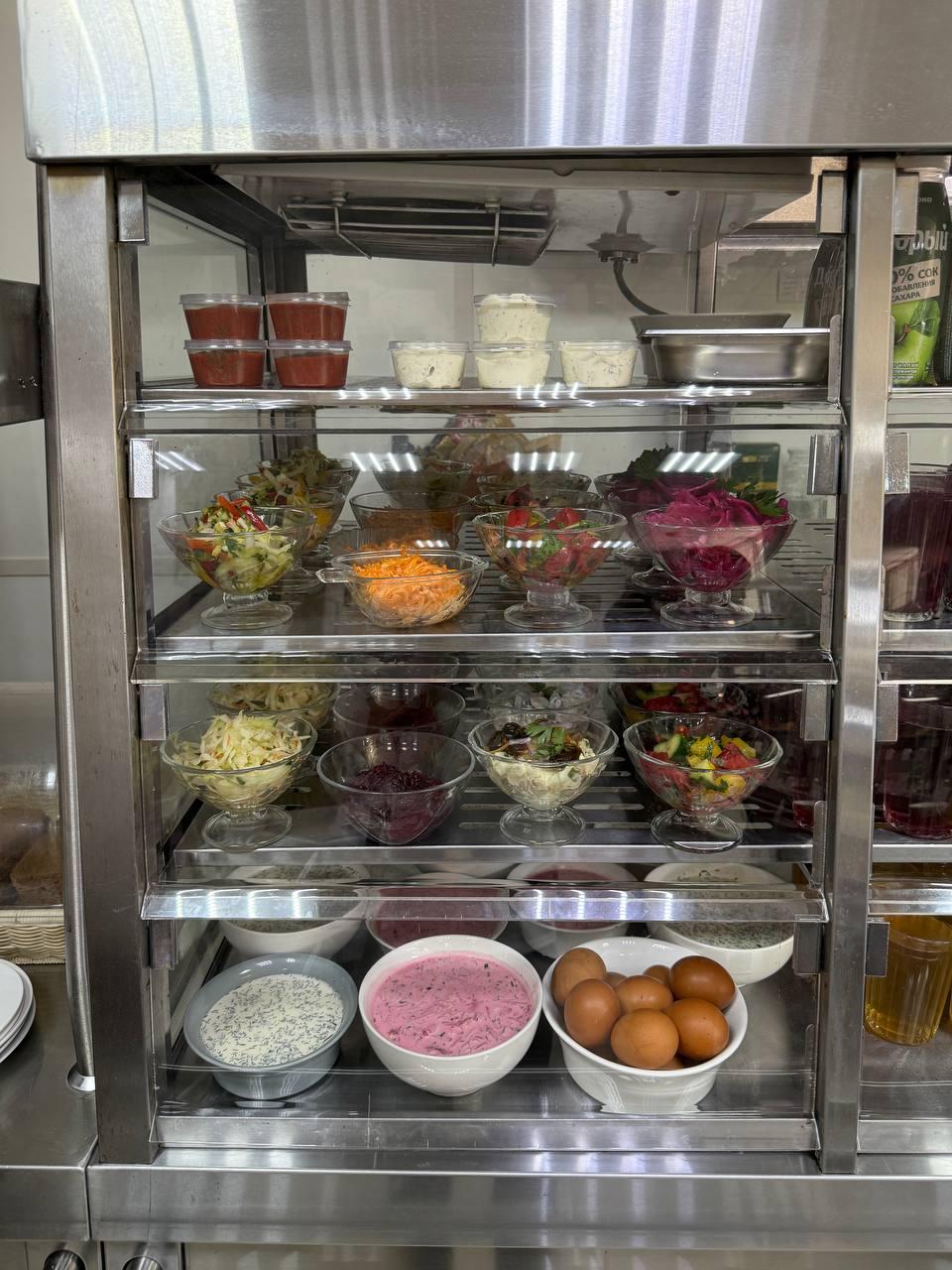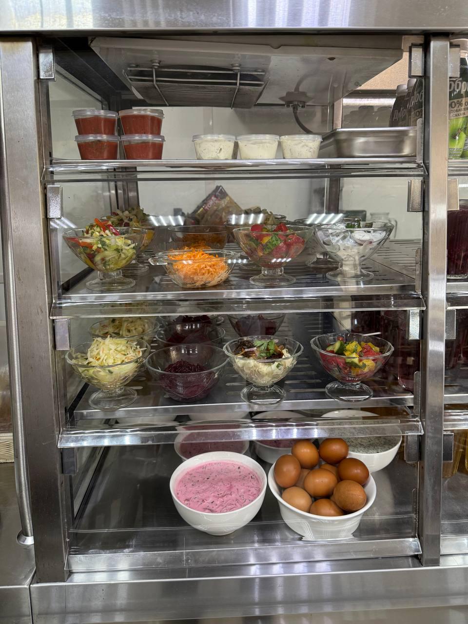 Салаты, выпечка и напитки в ассортименте